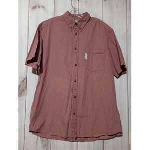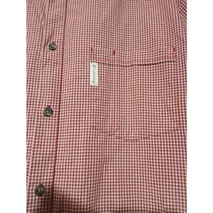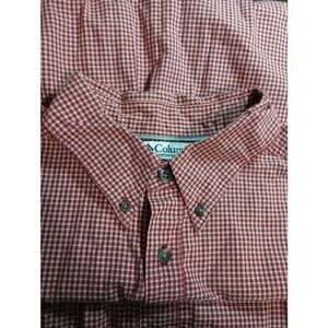 Columbia Shirt Men's Large Red Check Button Front Short Sleeve