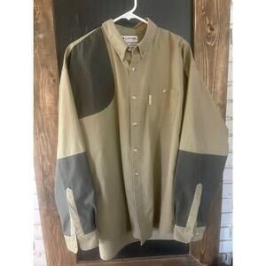 Columbia Shooting Shirt Quilted Shoulder Patch Mens Size XL Two Tone Brown EUC