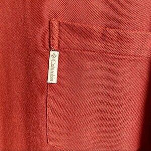 Columbia Rust Colored Short Sleeve Shirt. 100% Cotton with front pocket. Men's Size XL with Approximate Measurements laying flat: pit to pit 26” length 34". Overall good used condition, some fading and piling.