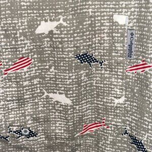 Columbia Short Sleeve Venter Button Down Collar Fishing Shirt XL Patriotic Shark