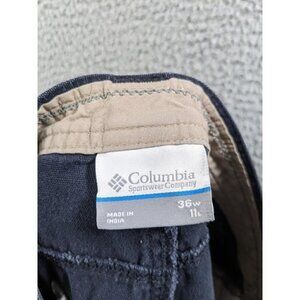 Columbia Shorts Mens 36x11 Soft Cotton Canvas Chino (Actual 34x10) Omni Shield Outdoor Hiking Trail Side Pocket Navy Blue