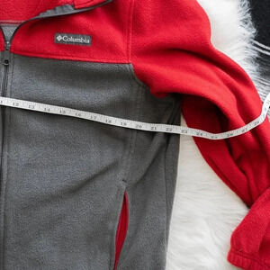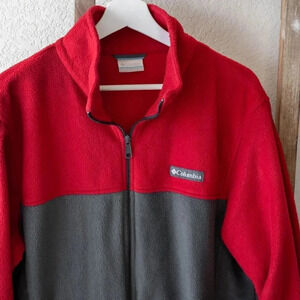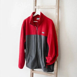 Columbia Size Large Red Gray Colorblock Full Zip Fleece Sweater Jacket Retro