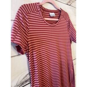 The Columbia Size Small dress is a stylish and comfortable option for women looking for a casual yet chic outfit. With its athletic stripes, short sleeves, and A-line silhouette, this knee-length dress is perfect for everyday wear. The multicolor design adds a fun and vibrant touch to the classic striped pattern, making it a versatile addition to any wardrobe. Made by the trusted brand Columbia, this dress is sure to be both quality-made and trendy.
