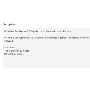 *** This is the outer shell of a Columbia Interchange Ski Jacket. The internal layer isn't included.