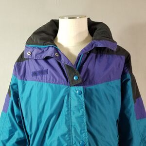 Columbia Ski Jacket Womens Large Parka Coat Blue Color Block Nylon Winter