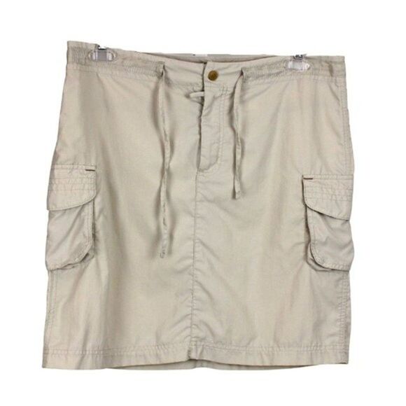 Columbia Skirt Khaki Drawstring Waist Snap Cargo Pockets Front Zip Beige M
