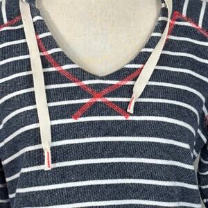 Columbia Small PFG Pullover Top Hooded Striped Stretch Long Sleeve Pocket V-Neck