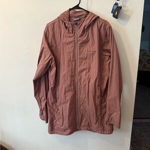 Elegant Columbia jacket in soft pink. Features a durable zipper. Size XXL. Light weight