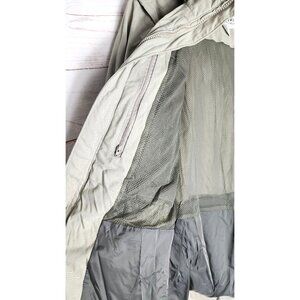 Experience ultimate functionality with the Columbia Sportswear Beige Safari Utility Jacket. Designed for outdoor enthusiasts, this unisex jacket features a pop-out hood, full zip closure, Velcro cuffs, zipper sleeves, inner pockets, and a back pouch. Made from 100% nylon microfiber fabric, it's breathable, durable, and perfect for hiking, hunting, or golfing adventures.