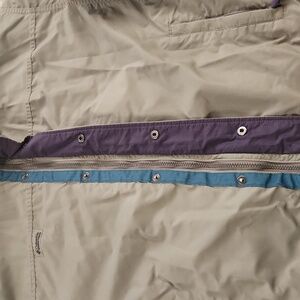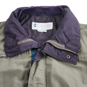 Olive green and teal vintage Columbia Sportswear Co Bugaboo winter coat shell with radial sleeves. Has spot for liner to zip in. Size Large. Shell, lining, knit - 100% Nylon. In great condition.