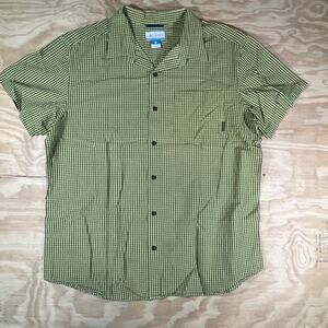 Columbia Sportswear Green Black Gingham Check Button-Up Short–Sleeve Shirt XXL