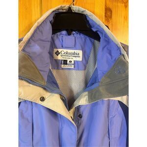 Columbia Sportswear Interchange Jacket Blue Beige med Core Women's this does not include the hood or the inside liner just basic jacket in good used condition pit to pit 24.5” length 28.5” (1965)