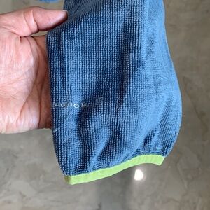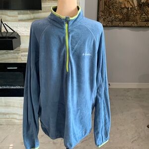 Men’s Quarter Zip Baby Blue Pullover with Green Elastic Cuff and Hem Trim Sueded Fleece By Columbia. Comfy and Cozy. Gently Pre-Owned. No Stains or Tears. Size XL (A)