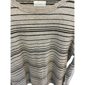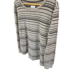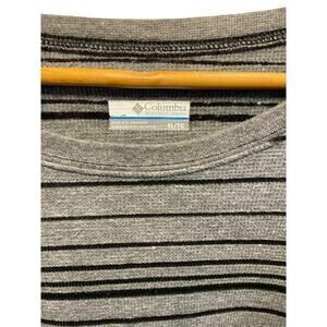 Columbia Sportswear Men's OMNI-WICK Grey & Black Textured Long Sleeve Shirt XL. Texture of this shirt is a ribbed feeling and appearance. Grey with black stripes. Top is in good used condition. See photos. Some wash wear, mainly on the interior tag. Material is cotton and polyester.