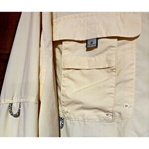 Crafted for the outdoor enthusiast, the Columbia Sportswear PFG Omni Shade Shirt offers versatile wear in a vibrant yellow hue. Men's size XL ensures a comfortable fit for those who enjoy hiking, fishing, or simply exploring the great outdoors. This shirt features a breathable, lightweight fabric that's ideal for all seasons, keeping you cool when it's hot and warm when it's cool. Functionality meets style with this shirt's long sleeves, collared neckline, and easy-care fabric that's machine washable. The Omni Shade technology embedded in the nylon and polyester blend provides sun protection, making it perfect for any casual occasion, from a laid-back fishing trip to a relaxed evening out. The shirt's ample pockets and vented design add practicality to this stylish piece, ensuring it's a go-to in any wardrobe.