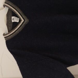 Men's XL Columbia Sportswear Pullover V Neck Sweater. 100% Shetland wool. Made in USA. Navy Blue. pre owned in excellent condition.
