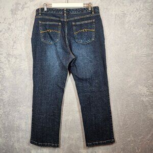 Columbia Sportswear Womens 16 Straight Leg Jeans Medium Wash Yellow Top Stitch