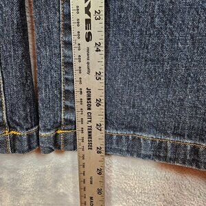 In good condition dark wash straight leg.