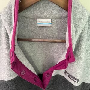 Keywords: Columbia, Women's Fleece Jacket, Snap Pullover, Large, Grey, Purple, Outdoor Wear, Warm, Lightweight, Casual, Cozy.
