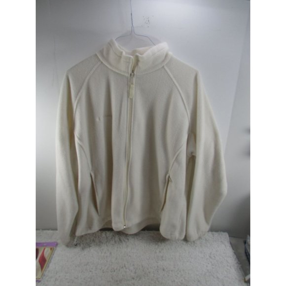 Columbia Sportswear Womens XL White Cream Logo Full Zip Fleece Jacket WW6114