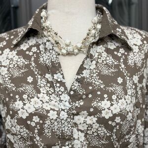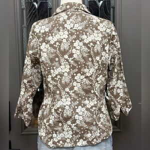 Floral 3:4 Sleeve Pearl Snap Front Top
