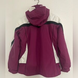 Pre owned in great condition, purple, white and black, interchangeable jacket is solid black, broken zipper on main jacket with no problems closing