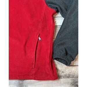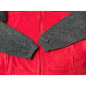 Columbia Steen Mountain Red Grey Zip Up Fleece Jacket XL Gorpcore Outdoor. This luxury fleece jacket has zip up pockets, mock neck line, elastic cuffs and zipper front. 100% Polyester. Machine washable. Item in excellent gently used condition. No known rips, tears, holes, stains or defects.