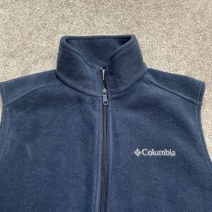 Columbia Steens Mountain Fleece Vest Mens Small Blue Black Full Zip Outdoor Hike