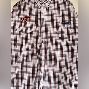 Columbia Super Bonehead PFG Virginia Tech Long Sleeve Plaid Shirt Mens Size M
