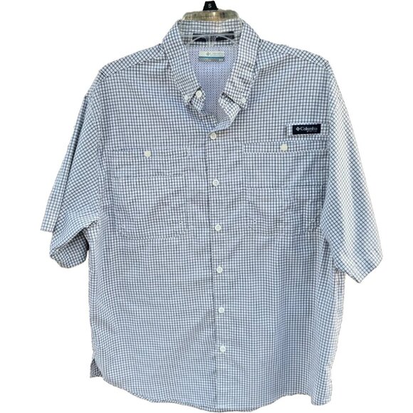 Columbia Super Tamiami PFG Short Sleeve Stripped Men's Medium Button Down Shirt