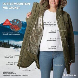 HANDY FEATURES: Includes a drawcord adjustable hood and waist, zippered chest and hand pockets, adjustable sleeve cuffs, a drop tail, and removable faux fur trim on the hood.