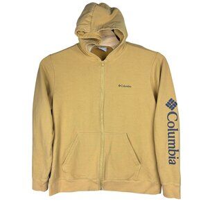 Columbia Sweater Hoodie Mens XL Yellow Fleece Full-Zip Graphic Logo Cotton Blend