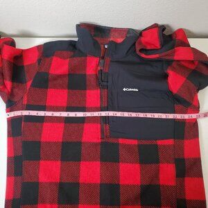 Columbia Sweater Weather 1/2 Zip Buffalo Plaid Red Black Sweatshirt Men's XL. Zipper pocket on chest. In good pre-owned condition. Please see all pictures for more details.