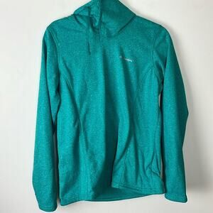 Gently Used Columbia Turtleneck Hoodie Sweater. This is a women's medium. Nice shade of light green. Super soft. Medium weight sweater. 100% polyester.