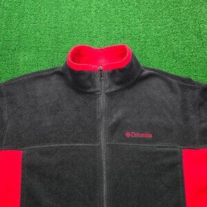Columbia Sweatshirt Mens XL Red Black Full Zip Fleece Long Sleeve Hiking Casual