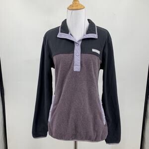 Columbia Sweatshirt Womens L Large Gray Purple Fleece Snap Buttons Pullover