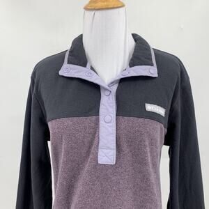 COLUMBIA SWEATSHIRT WOMENS L LARGE GRAY PURPLE FLEECE SNAP BUTTONS PULLOVER