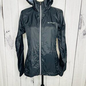 Columbia Switchback Windbreaker Rain Repellant Packable Black Sz M Hooded