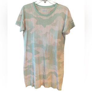 Columbia Sz M Camo Green Tan Polka Dots Cotton Outdoor Sporty T-Shirt Dress