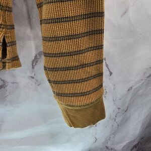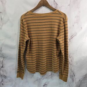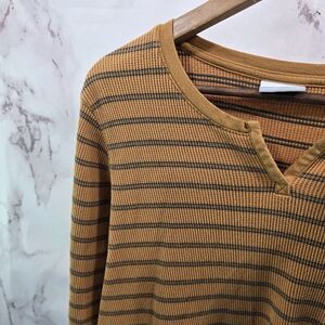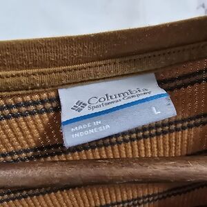 Columbia T Shirt Women Large Brown Long Sleeve Tee Thermal Waffle Striped V Neck