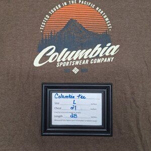 Stay stylish and comfortable with the Columbia Tee Shirt Brown PNW Mountain. This men's large tee features a unique Pacific North West design, perfect for casual wear or outdoor adventures.