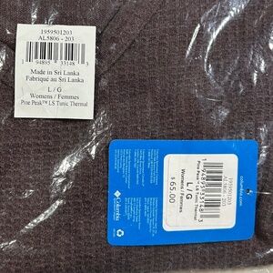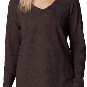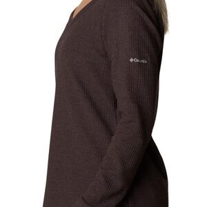 Columbia Pine Peak Long Sleeve V-neck thermal tunic. Size L. Brand new with tags in original packaging. 60% cotton 40% polyester. Color: New Cinder Heather (eggplant burgundy).