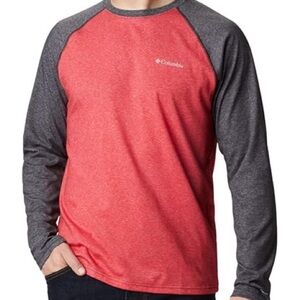 Columbia Thistletown Park Raglan Tee Men’s Size Large Long Sleeve Red Dark Grey