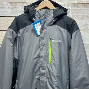 Columbia Tipton Peak Insulated Jacket Mens XL Gray Black Hooded NWT New