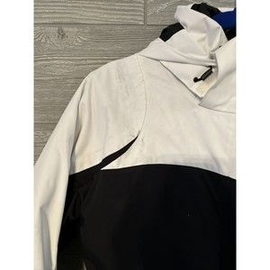This snow jacket is perfect for snowboarding, sledding, or any outdoor winter activity. With a colorblock pattern in black and white, it's sure to turn heads on the slopes. The jacket features a zipper and snap button closure, ensuring a secure fit. Don't let the cold weather ruin your winter fun; stay warm and fashionable in this Columbia Titanium Snow Jacket.