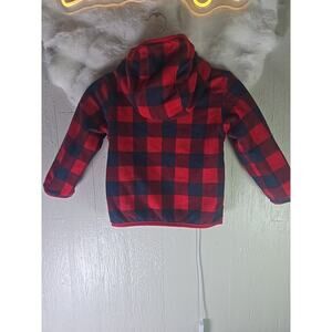 Two jackets in one! Choose between playful plaid or solid red