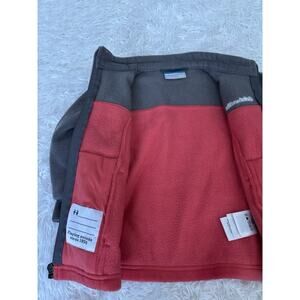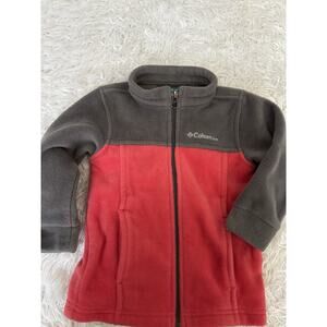 Fantastic, cute, great quality classic Columbia toddler Sz. 18/24 month gray & reddish/ orange zip up fleece. Excellent condition. Very minimal signs of any wear. Great colors! Soft and comfortable!