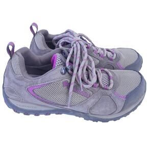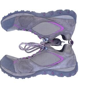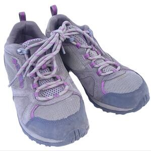 Columbia Trail Hiking Lace Up Shoes Outdoor Women Size 7 Tan Purple Leather