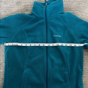 Warm turquoise fleece by Columbia. Ideal for outdoor adventures. Excellent conditions! No flaws!