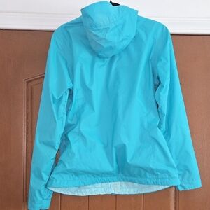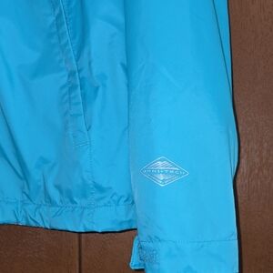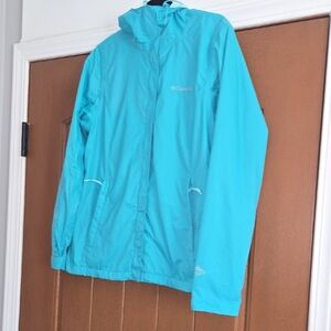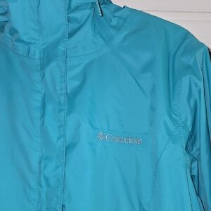 Columbia jacket in bright turquoise. Ideal for outdoor adventures. Lightweight and durable waterproof breathable size Medium